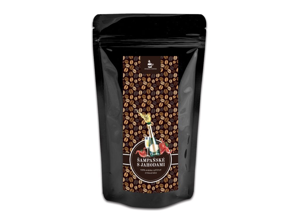 - Šampaňské s jahodami - káva 100% zrnková arabica, aroma šampaňské (3%)