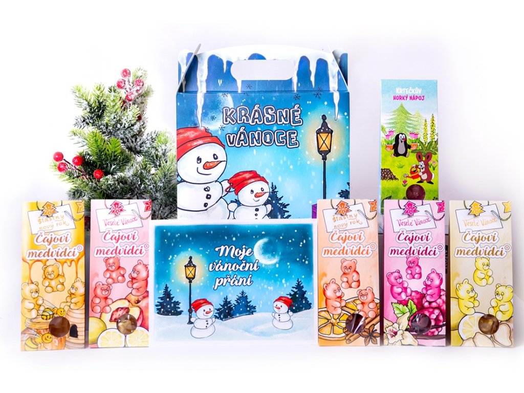 Vánoční box čajových medvídků a krtečků