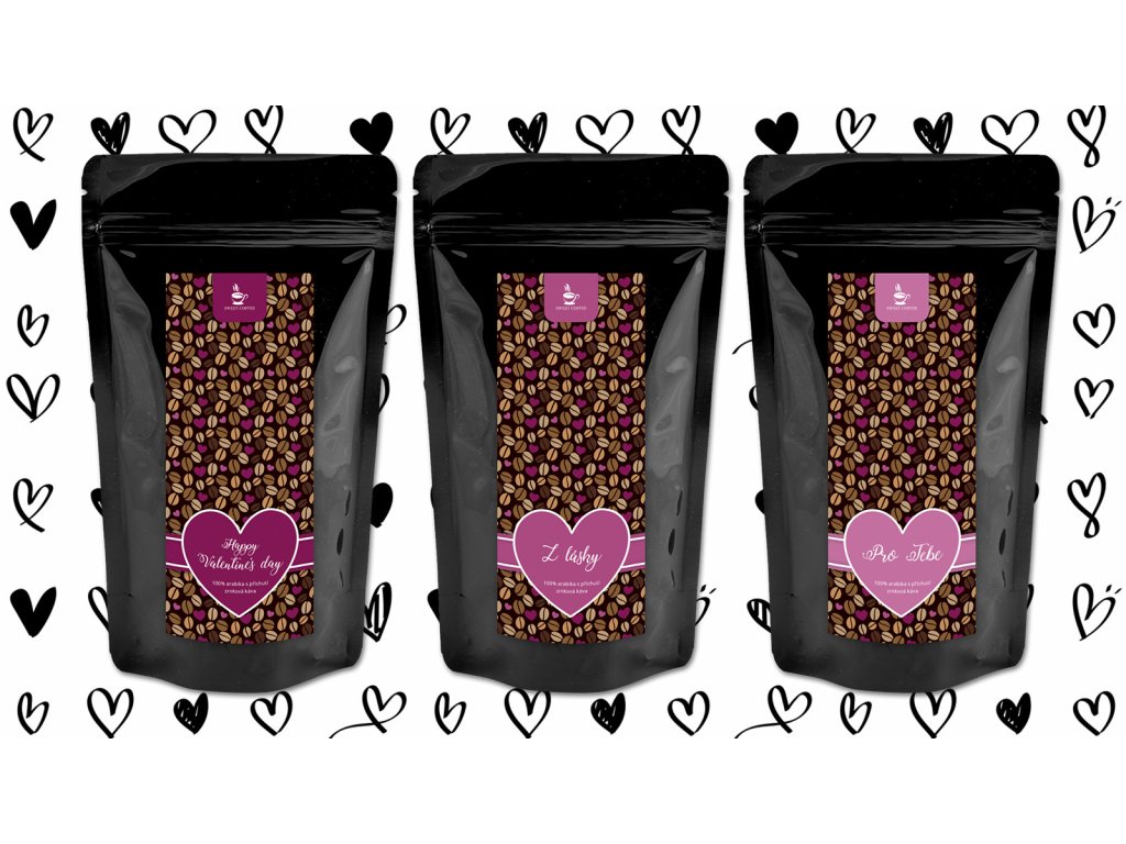 VALENTÝNSKÝ BALÍČEK OCHUCENÝCH KÁV růžové srdce