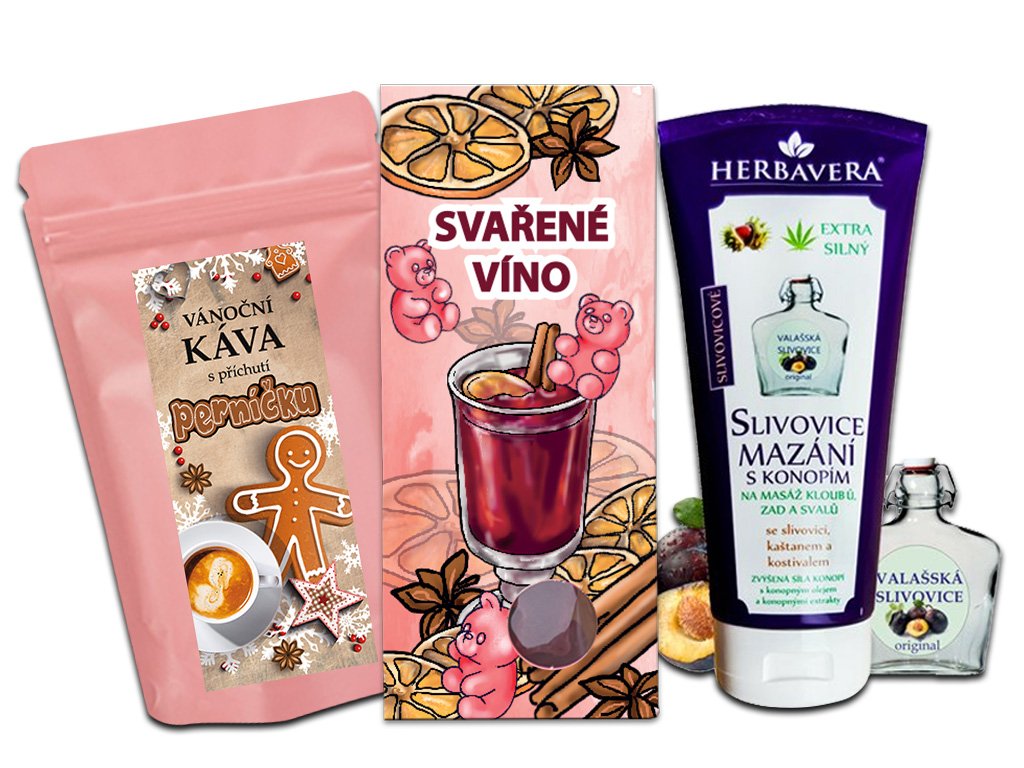 BALÍČEK SLIVOVICOVÉ MAZÁNÍ + SVAŘENÉ VÍNO + PERNÍČKOVÁ KÁVA